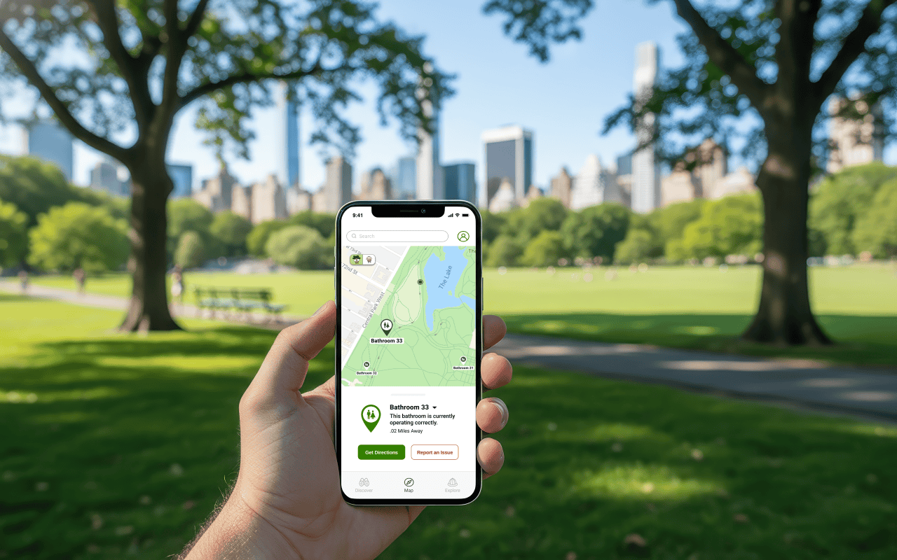 Find a restroom in Discover Mode and report an issue with it.