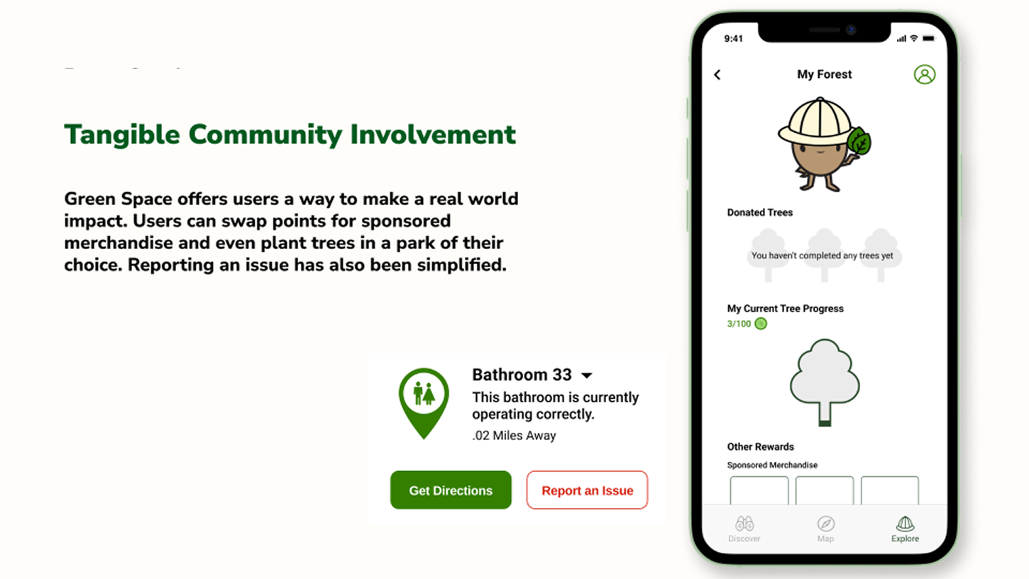 With Green Space, I was truly able to connect product design with real world scenarios. What is the root cause of user pain points? What are the implications of the root cause? This project allowed me to think bigger in the truest sense and develop a solution that was not only enjoyable but also cut inefficiencies and find a way to give back to the community.