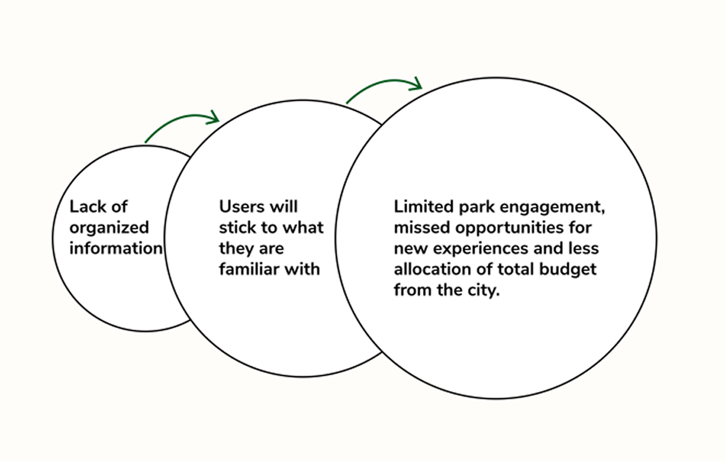 With these insights in mind, we were getting a clearer picture of the user and what the users might appreciate in an online park platform. We created a problem statement summing up our findings and setting up the next stage of solving the problem.