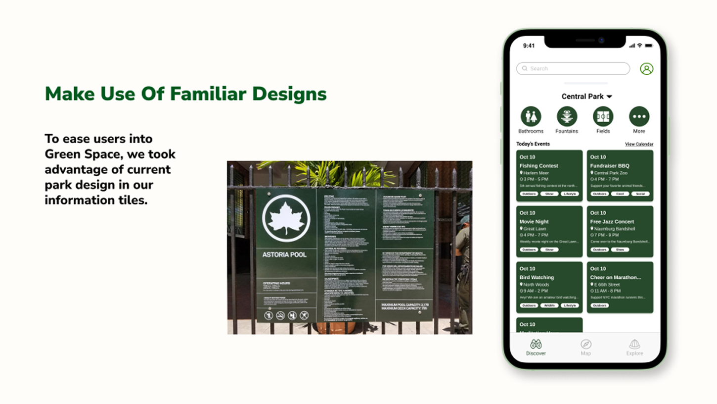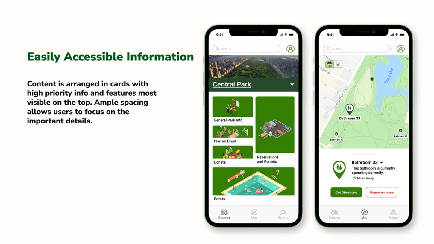 "NYC park-goers feel lost when looking for amenities or events within the park and need a streamlined way to locate information because current resources do not fully equip them to explore unfamiliar areas."