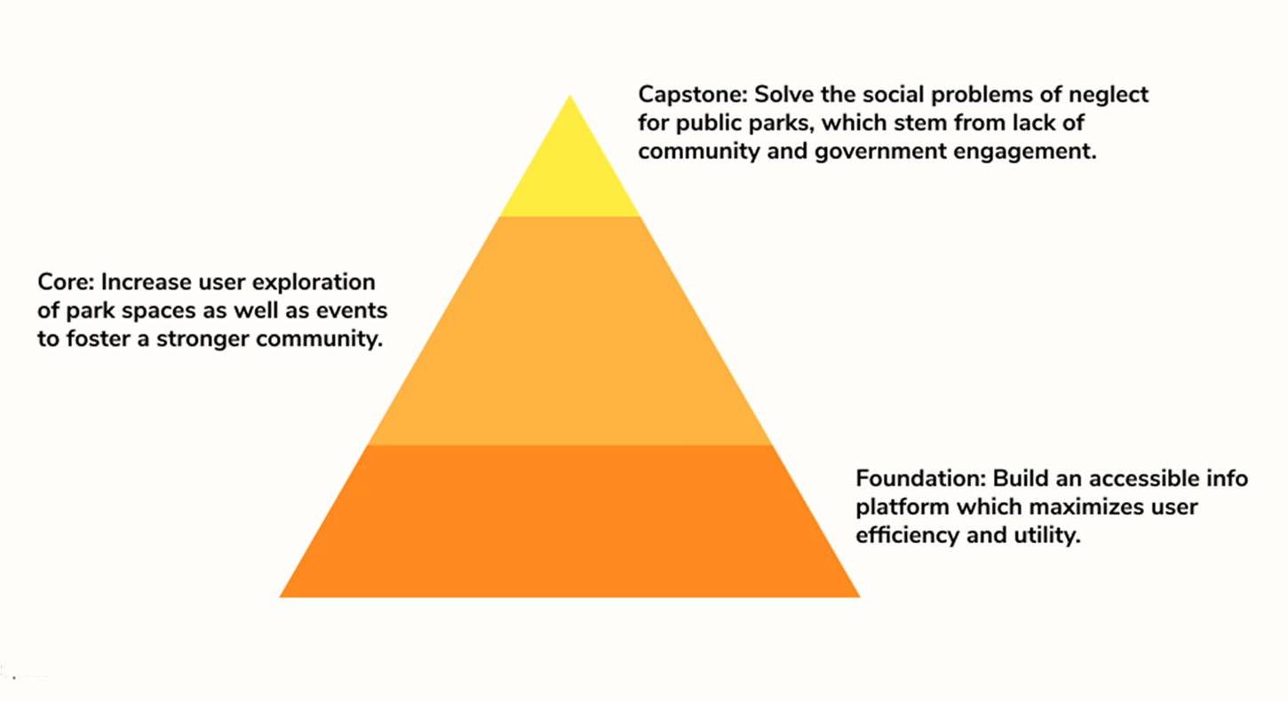 To revitalize the park system, my team sought out a user centered solution which would which bridge the gap between the community and their public parks. By helping engage and educate citizens, our project could potentially alleviate commonly ignored issues and give users a more proactive role in the development of their public spaces.